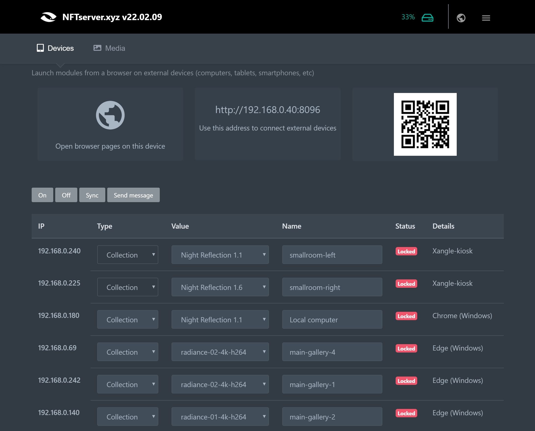 Overlays (on/off toggle on all monitors, artist info, qr code)